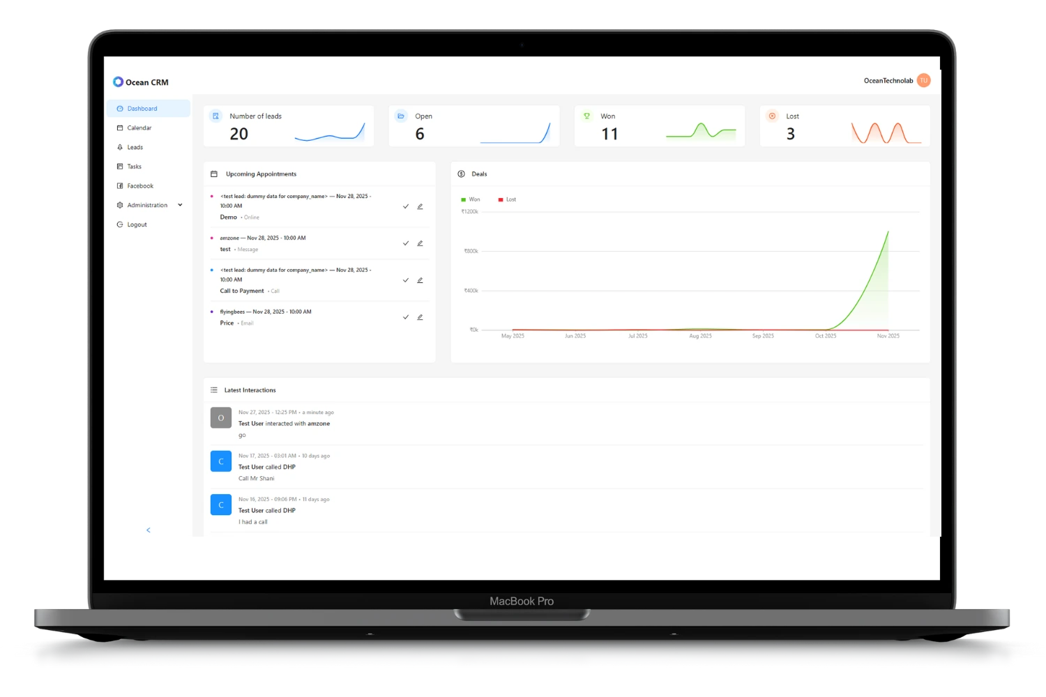 Ocean CRM helps you track leads, manage conversations, automate follow-ups, and grow your business — all from one powerful dashboard.