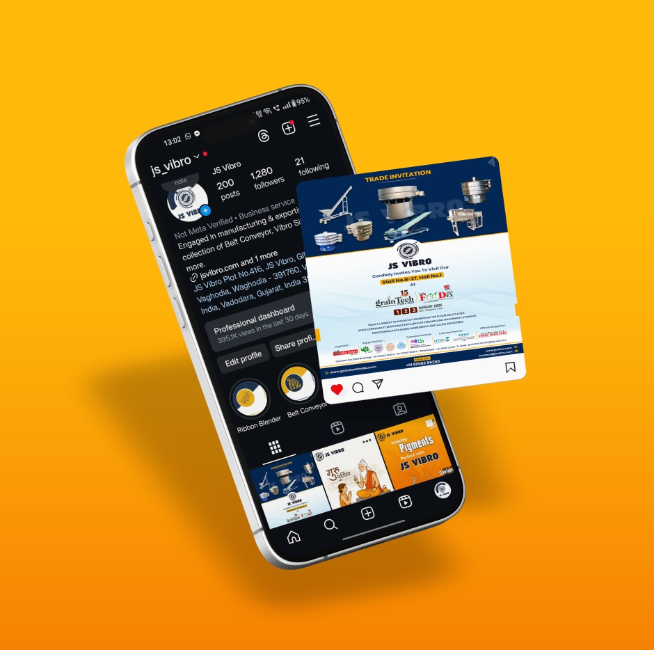Industrial machines do not usually go viral. But that did not stop us. We turned JS Vibro’s product stories into scroll-stopping content across platforms. From reels showing vibro sifters in action to informative posts breaking down what a screw conveyor does, their page started gaining engagement from the right audience.