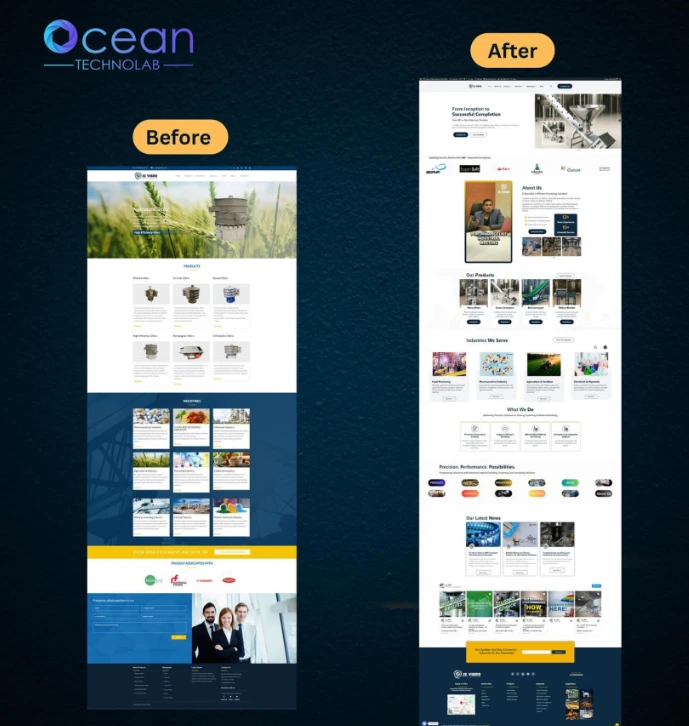 Before Oceantechnolab, JS Vibro barely had 1000 viewors in a year who used to visit their website. But when we built one from the ground up, the figure reached 1 million in just a month. Clean, technical, and mobile-friendly, the website was designed to showcase products, applications, and industries served. The website now works like a full-time sales team, helping people understand what JS Vibro does and how to reach out easily even at your 2AM thought.