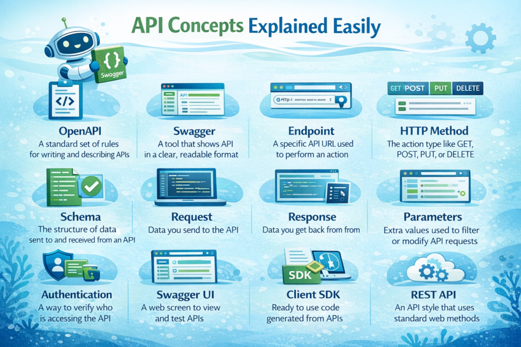 Swagger is a tool that automatically generates a visual “instruction manual” for your API. It allows you to visualize and interact with your API’s resources without having to look at a single line of source code.